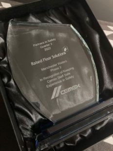 Raised Floor Solutions Limited have proudly received the CEMEX ‘’Safety in Partners” award for Q3. This is awarded quarterly by CEMEX to customers that run their sites safely and look after their truck drivers in a safe manner.