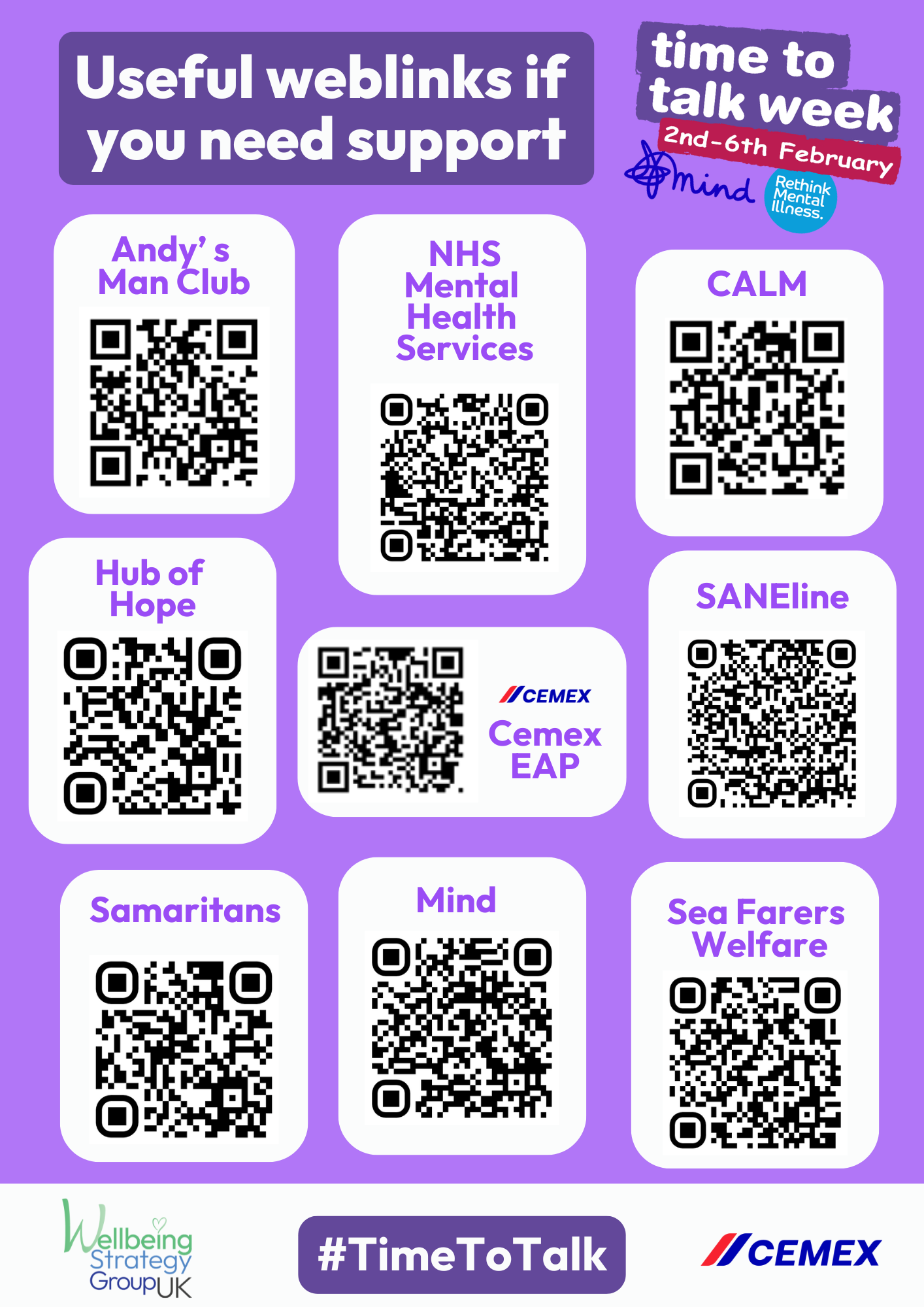 | Category | Wellbeing Materials - Time to Talk |