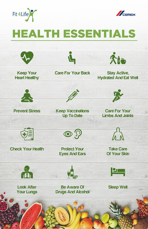 New health essentials poster for you to download, and print out for notice boards.