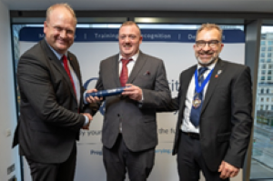 Mike (seen here in the middle of the photo) was presented with his award by IQ President, Ben Williams, at the Student Awards Ceremony at the Birmingham Symphony Hall earlier this month.