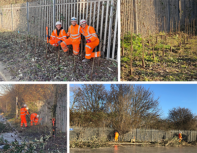 The team, led by Richard Kelly, West Yorkshire Ops Manager Readymix, included Kevin Aaron, Carl Robinson and Scot Cook. Before they could plant the saplings, the team worked hard to clear some overgrowth.