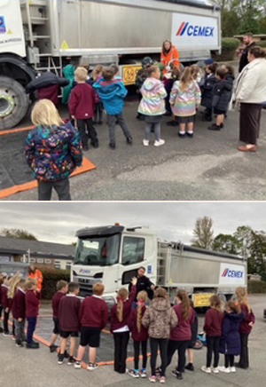 Cemex’s commitment to protecting vulnerable road users is what drives its programme for Road Safety Engagement in schools. Recently, a team from Halkyn quarry visited local Ysgol Brynhyfryd Primary School, to give the children an education presentation about road safety. The team took along a Cemex tipper truck to help the children understand the driver blind spots.