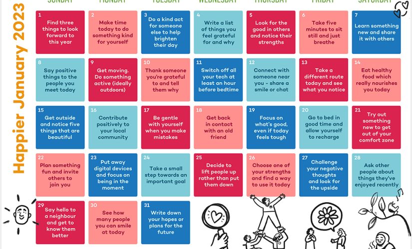 You can download the Happier January calendar here Action for Happiness - Happier January (1086 downloads) which is full of actions to get the new year off to a positive start. You can also download the app to get daily inspiration and be part of a friendly community putting these ideas into action.