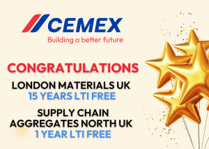 Congratulations to everyone in London Materials UK who achieved 15 years LTI free. Also, congratulations to Supply Chain Aggregates North UK who achieved 1 year LTI free. These are significant milestones – well done.