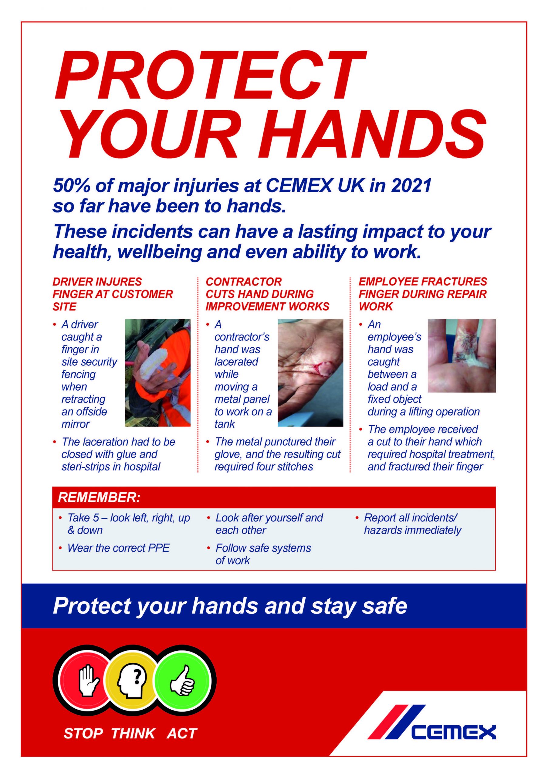 Half of the injuries which have happened recently in CEMEX UK have been to hands.
